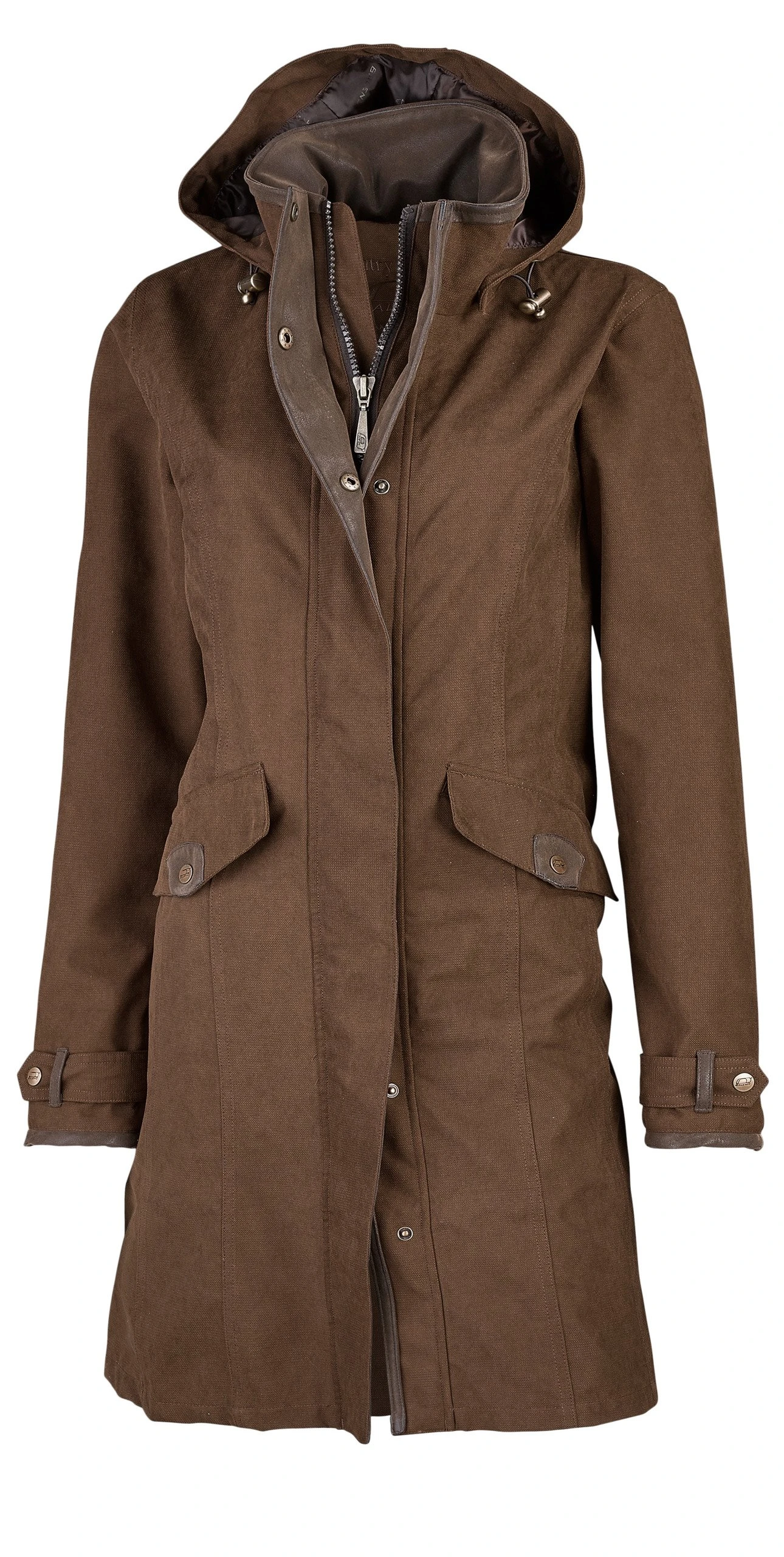Der Baleno Damenmantel Chelsea verfügt über zwei Taschen mit Druckknopf-Patte, eine Napoleontasche und eine Netz-Innentasche.