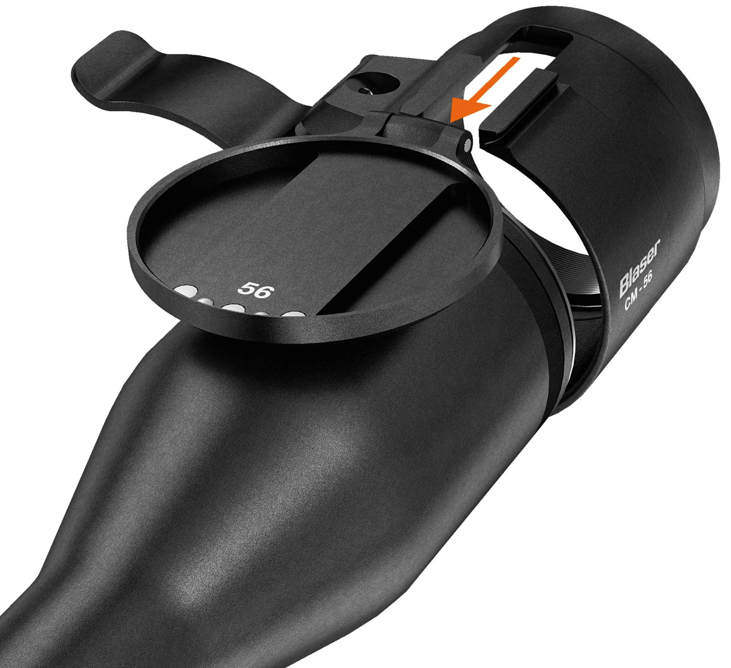 Die Blaser Vorsatzmontage CM56 ist passend für das Objektiv des Blaser Zielfernrohrs B2 2-12×50. Damit erreichen sie eine optimale Verbindung zwischen Zielfernrohr und Wärmebild-Vorsatzoptik. Sie kann mittels eines M52x0,75-Gewindes auf die Vorsatzoptiken Liemke Merlin 42 (Nr. 85-237-03) und Liemke Luchs-1 (Nr. 85-261) angebracht werden.
