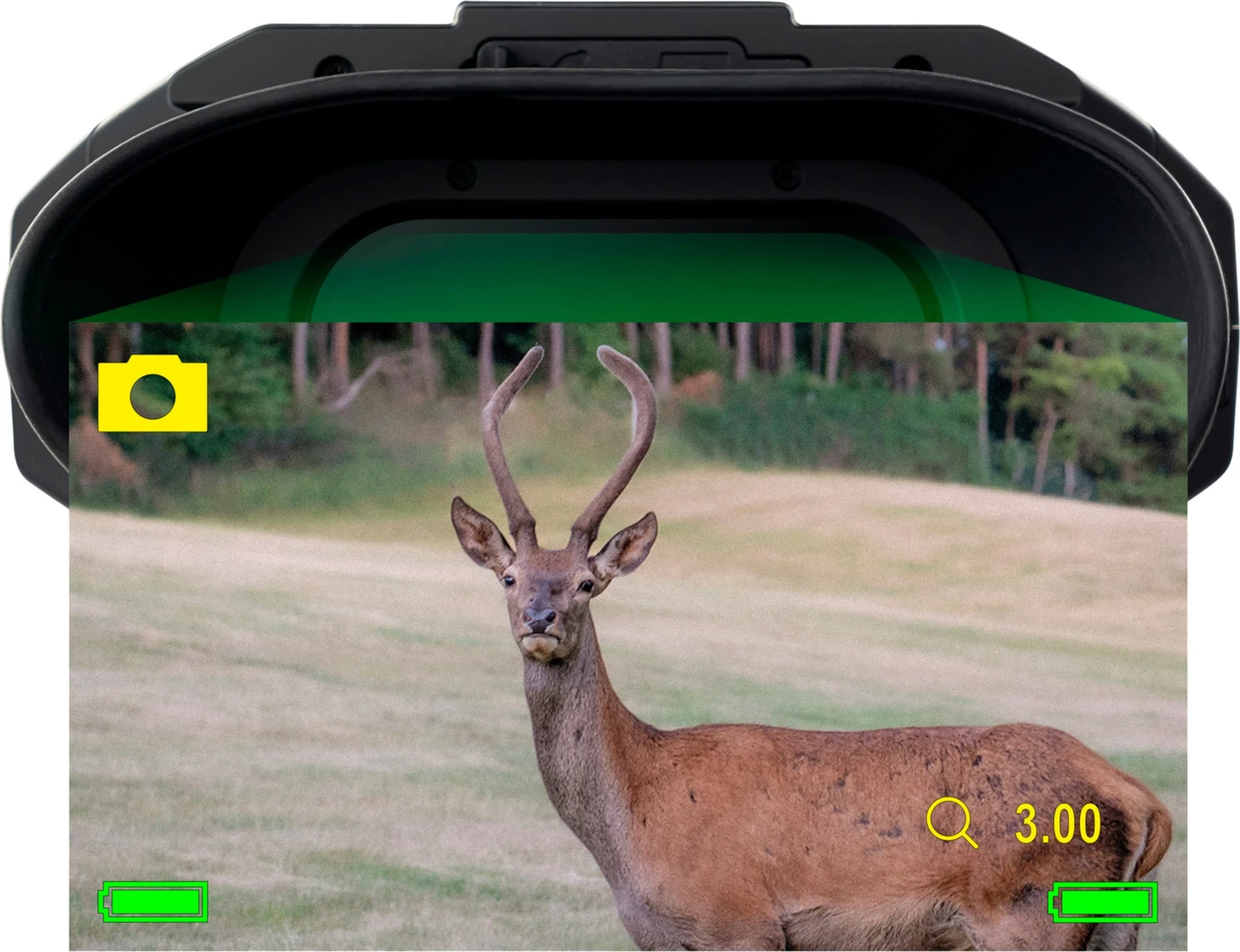 - digitales Fernglas mit bis zu 500 Meter Reichweite