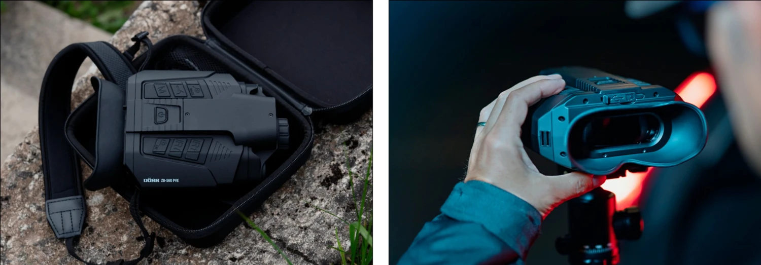 Das Dörr Nachtsichtgerät mit Entfernungsmesser ZB-500 PVE ist ein vielfältiges Tool in einem robusten Gehäuse, mit dem Sie Tier und Natur am Tage und in der Nacht beobachten können. Das digitale Fernglas bietet bis zu 500 Meter Reichweite, während die 6-fache optische Vergrößerung und der 3-fache digitale Zoom alle Details nah heranholt. Bei schlechten Lichtverhältnissen und in der Nacht spielt das Dörr Nachtsichtgerät ZB-500 PVE eine weitere Stärke aus, indem die kontrastreiche Schwarzweiß-Darstellung bei einer Entfernung bis zu 200 Meter jede Beobachtung zum Erfolg macht. Der elektronische Entfernungsmesser lässt Sie die Distanz zu Objekten bis zu 200 Metern Reichweite erfassen. Neben der Nachtsicht- und Fernglasfunktion sowie dem Entfernungsmesser bietet das Nachtsichtgerät auch die Möglichkeit, Fotos und Video in HD-Qualität mit Ton zu erstellen.