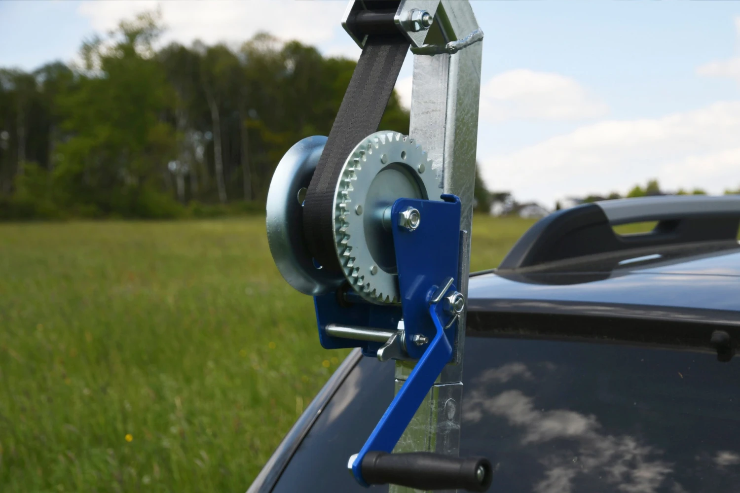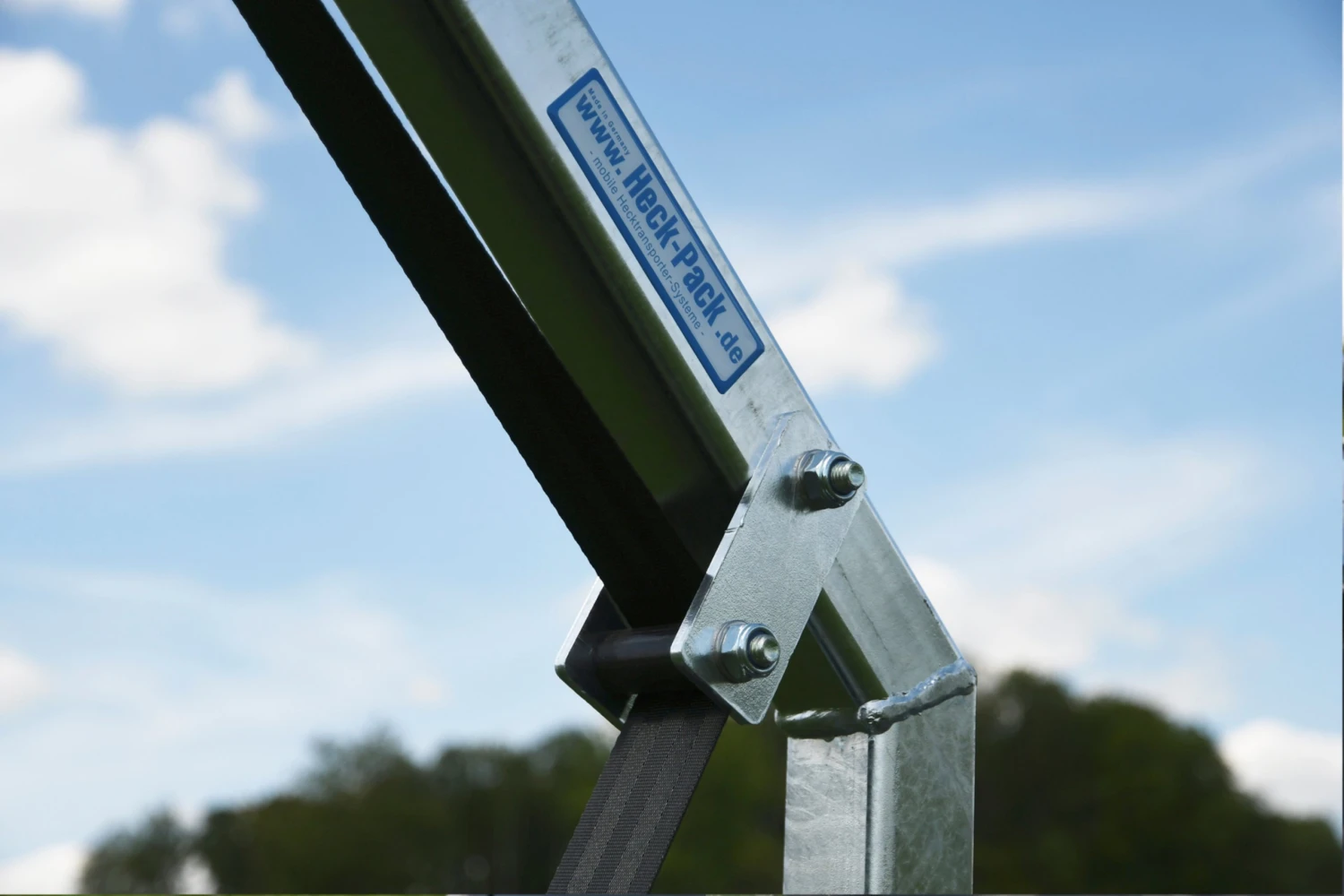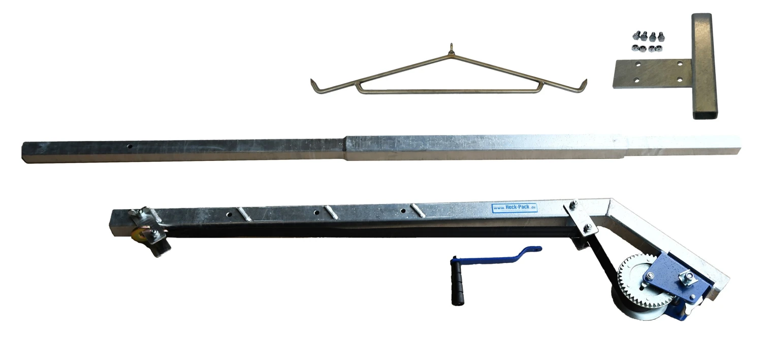 Lieferung inklusive Gurtseilwinde, Führungsadapter und Montagematerial, jedoch ohne Heckträger. Mit Galgendreieck aus Edelstahl.