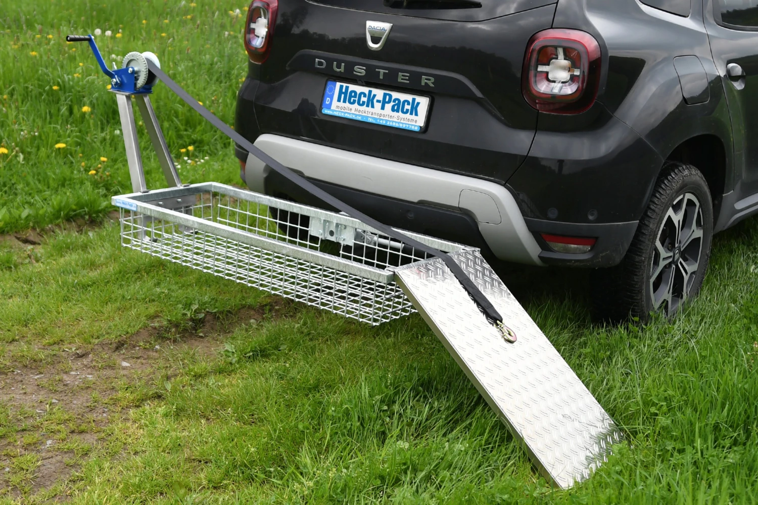 Die Heck-Pack Handseilwinde wird mit ihrer Halterung aus Edelstahl auf dem Heckträger befestigt und ermöglicht ein bequemes Aufladen des erlegten Wildes auf den Heckträger. Das Gurtband hat eine Breite von 50 mm. Es lässt sich bei Leerlauf der Winde herausziehen und hat eine Länge von 6 m. Am Ende des Gurtbandes befindet sich ein Lasthaken mit Sika-Haken. Die Heck-Pack Handseilwinde lässt sich über zwei Schrauben mit Sterngriff schnell und einfach montieren.