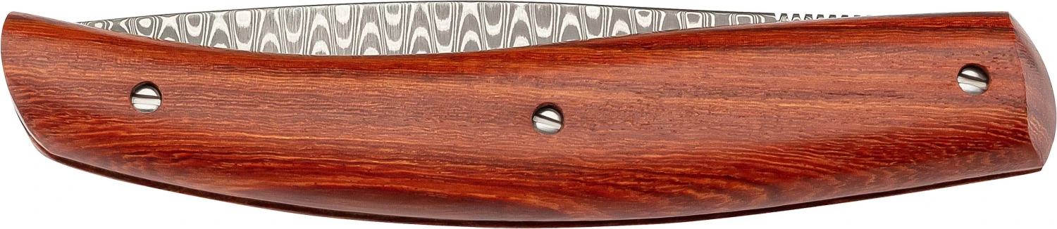 Das elegante Herbertz Taschenmesser Damast zieht mit seiner wunderschön gezeichneten Klinge viele Blicke auf sich. Eine Kernlage aus rostfreiem 9Cr14MoV-Stahl und insgesamt 67 Lagen sorgen für das charakteristische Damastmuster. Der schlanke Griff des Messers besteht aus Sandelholz. Klingenlänge 8,2 cm. Länge geöffnet 18,6 cm. Gewicht 49 g. Lieferung mit Aufbewahrungsbox.