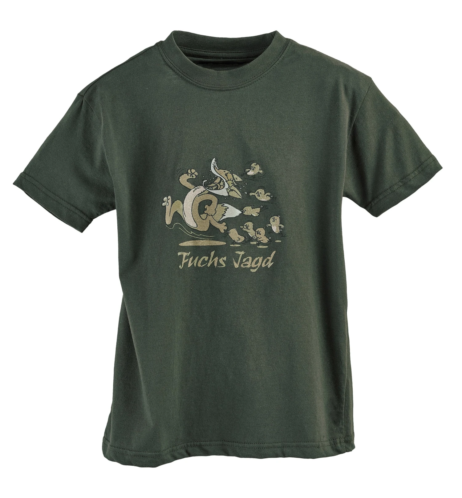 Eine fröhliche Verfolgungsjagd ist auf der Front des schlichten Hubertus-T-Shirts Fuchsjagd zugange.
