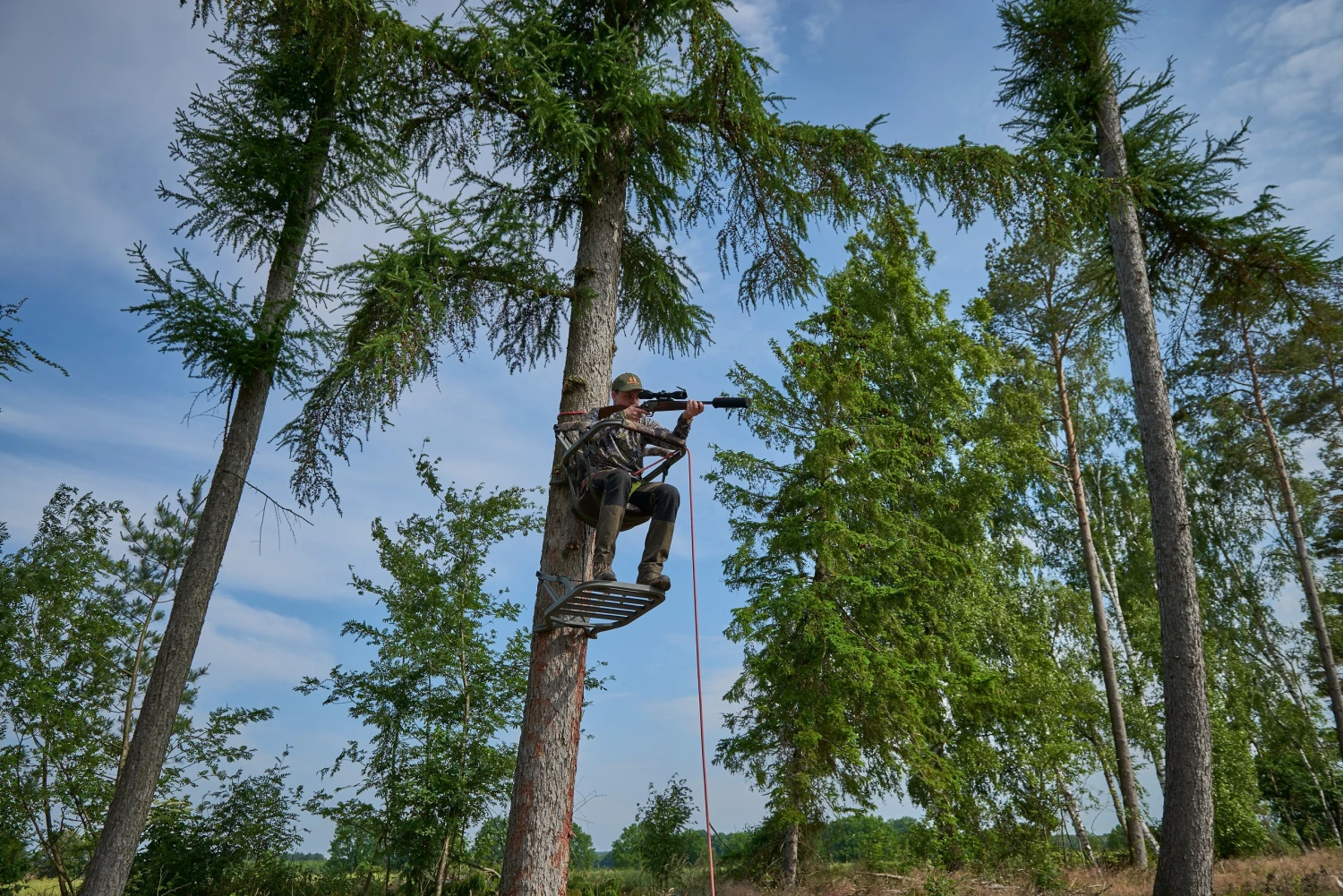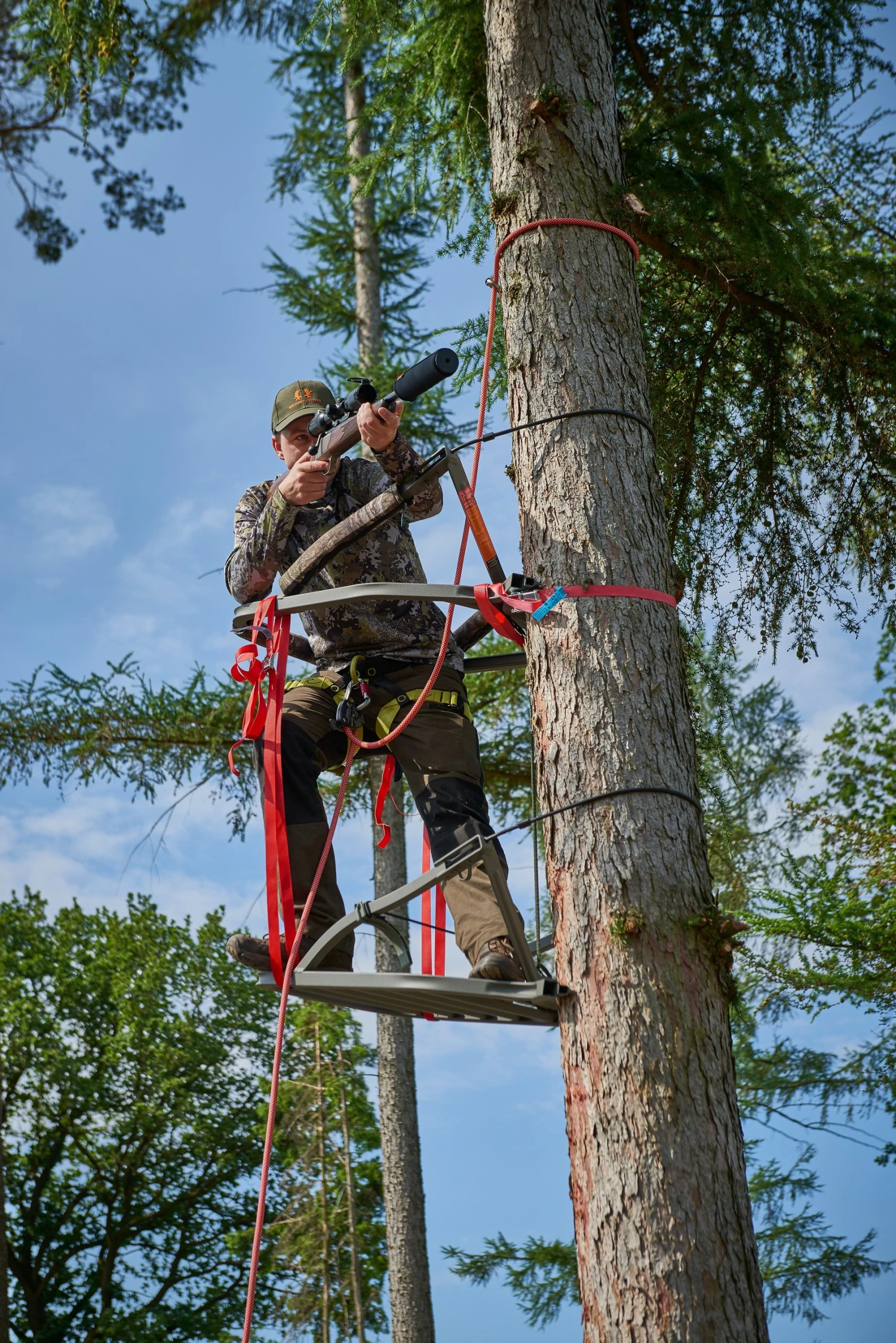 Der Klettersitz Summit Viper SD macht zuvor nicht bejagbare Bereiche zugänglich: Mit diesem tragbaren Klettergerät haben Sie einen mobilen Hochsitz dabei, den Sie für die Ansitzjagd flexibel nutzen können. Der Sitz ist bequem durch ein spezielles Befestigungspatent an Baumstämmen mit einem Durchmesser zwischen 20 und 51 cm fixierbar. Durch eine schnell erlernbare Technik, welche in der deutschsprachigen Bedienungsanleitung beschrieben ist, können Sie rasch und geräuscharm auf- und abbaumen. Für längere Ansitze empfehlen wir, das mitgelieferte Sitzpolster zu verwenden. In diesem lässt es sich auch über mehrere Stunden bequem sitzen. Bei Bewegungsjaden empfehlen wir, den Sitz ohne Sitzteil zu verwenden, um eine maximale Bewegungsfreiheit zu gewährleisten.