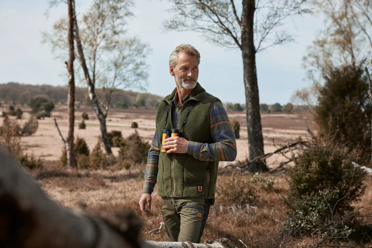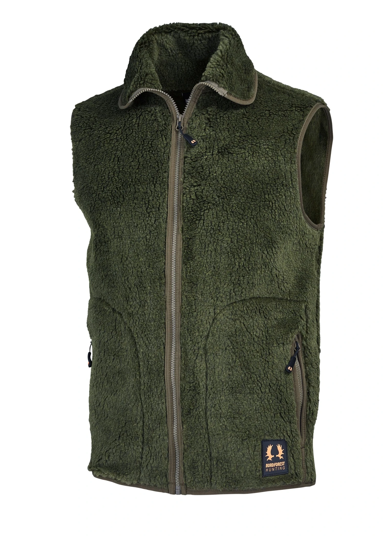 Die pflegeleichte Nordforest Hunting Faserpelzweste Viltmark ist beliebt bei der Arbeit, Jagd und in der Freizeit. Sie ist das ideale Kleidungsstück, wenn es für eine Jacke zu warm und für ein Hemd noch etwas zu kühl ist. Diese funktionale Weste ist ganz aus dem robusten, innen angerauten Nordforest Hunting Faserpelz gefertigt. Faserpelz bietet nicht nur einen hohen Tragekomfort, sondern ist auch sehr atmungsaktiv, feuchtigkeitsableitend, isolierend und schmutzunempfindlich. Der hohe Umlegekragen schützt den Hals- und Nackenbereich vor kaltem Wind. Das verlängerte Rückenteil fungiert als Nierenschutz. Die Faserpelzweste Viltmark ist mit zwei Seitentaschen mit Reißverschluss ausgestattet.
