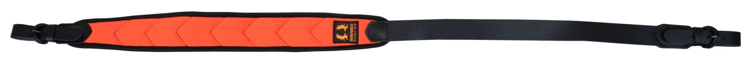 Der Nordforest Hunting Gewehrriemen Neopren verfügt über eine rutschhemmende Unterseite für sicheren Halt der Langwaffe beim Tragen über der Schulter. Die Oberseite besteht aus orangefarbenem Neopren und trägt zur Sichtbarkeit des Trägers bei. Der leicht gepolsterte Gurt bietet guten Tragekomfort und ist mit den beiden verstellbaren Schlaufen am Kunstledergurt leicht am Gewehr zu befestigen. Vorderseite mit Nordforest-Hunting-Logo. Breite ca. 5,5 cm. Länge ca. 100 cm.