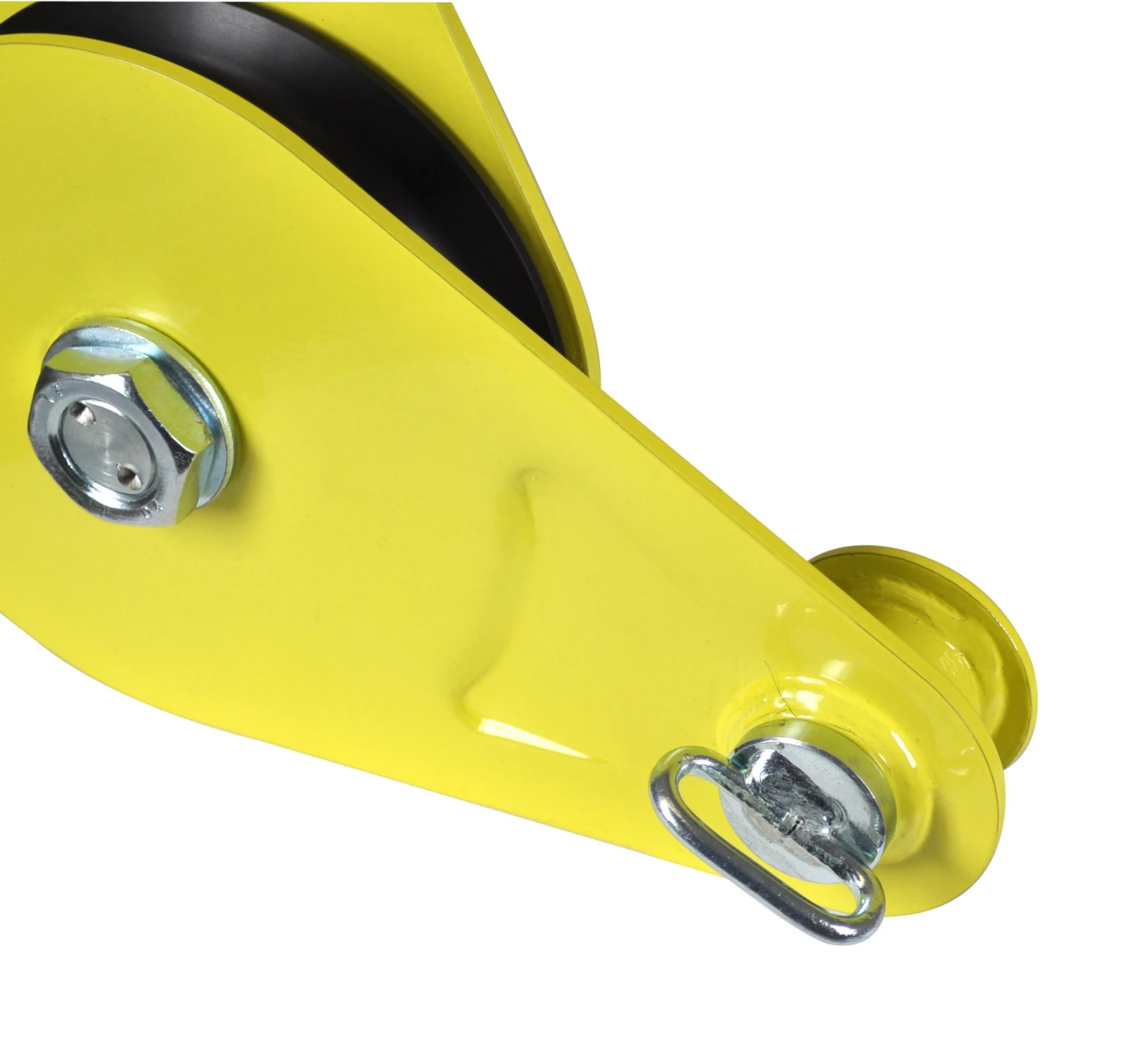 Kugelgelagerte Seilrolle aus Spezialkunststoff. Mit fester Aufhängung und Haltescheibe für den korrekten Sitz der Befestigungsschlinge. Drehbare Seitenteile aus hochfestem Stahl mit gesichertem Verschlussbolzen.