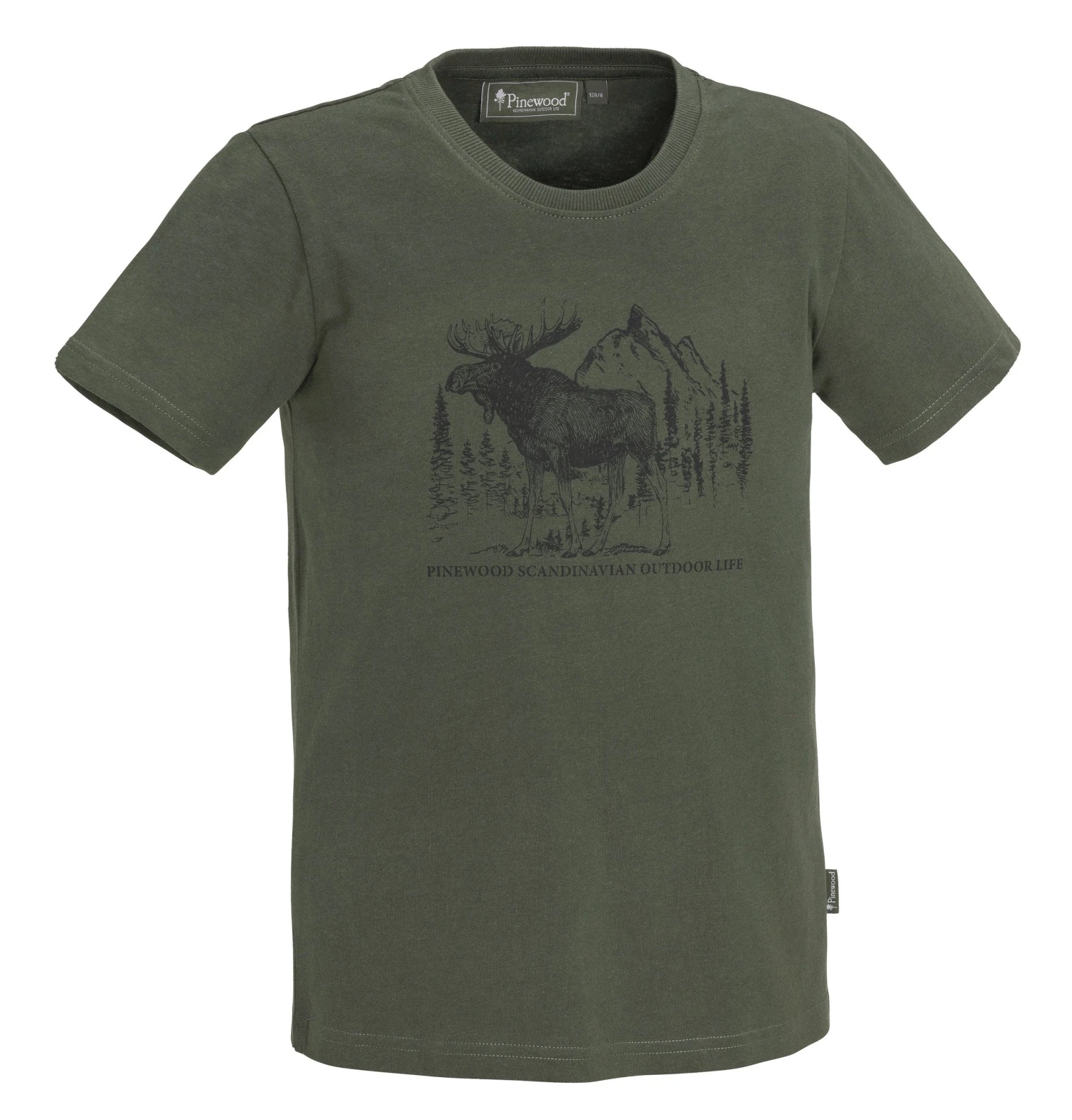 Das Pinewood Kinder-T-Shirt Moose Kids mit Pinewood-Schriftzug und Elch-Print liegt voll im Trend. Das T-Shirt kann zu allen Jagd- und Naturabenteuern getragen werden.