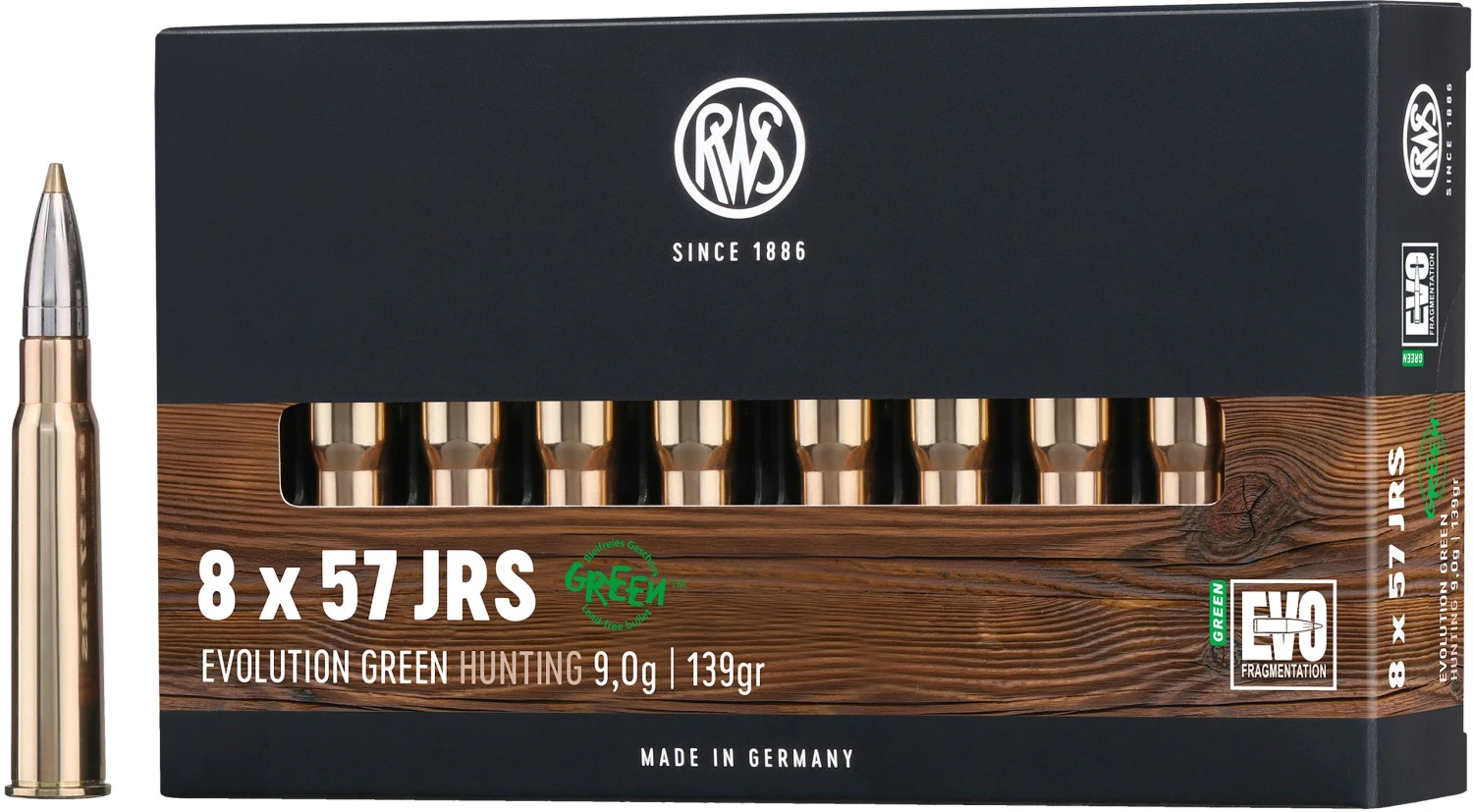 Die cleverste Alternative. Für alle, die auf traditionelle bleihaltige Jagdmunition verzichten wollen, bietet RWS mit seiner neuen Geschossentwicklung, dem Evolution Green, die cleverste Alternative. Durch ausgeklügelte und fein aufeinander abgestimmte Besonderheiten in der Konstruktion wird eine waidgerechte und erfolgreiche Jagd garantiert. Die Geschosskerne sind aus lebensmittelechtem Zinn. Durch spezielle Vorfragmentierung des vorderen Geschosskerns und den Einsatz der neuen RWS-Speed-Tip-Geschossspitze erreicht das RWS Evolution Green seine überzeugende Geschosswirkung – besonders auch auf weiten Schussdistanzen.