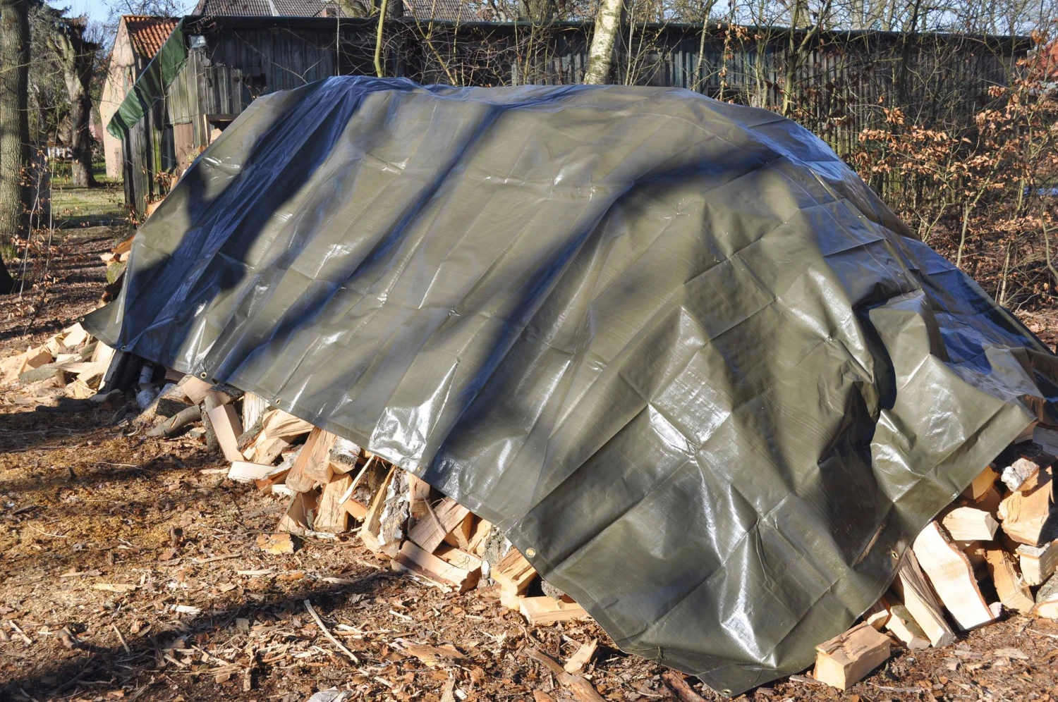 Zum Abdecken von z. B. Holz. Mit 280 g/m² ist diese Plane sehr schwer und ideal für den Dauereinsatz und raue Ansprüche geeignet. Die Plane ist randverstärkt und alle 100 cm mit einer Messingöse versehen. Farbe olivgrün.