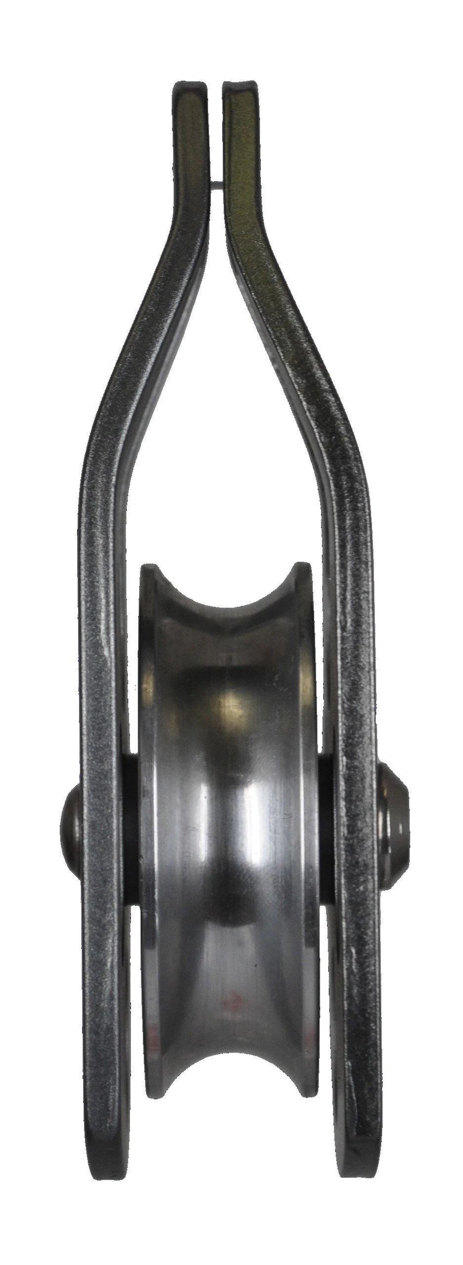 Die drehbaren Seitenteile der Seilrolle sind aus Aluminium gefertigt. Durch die großen kugelgelagerten Laufrollen können Seile bis 15 mm Ø Durchmesser verwendet werden.