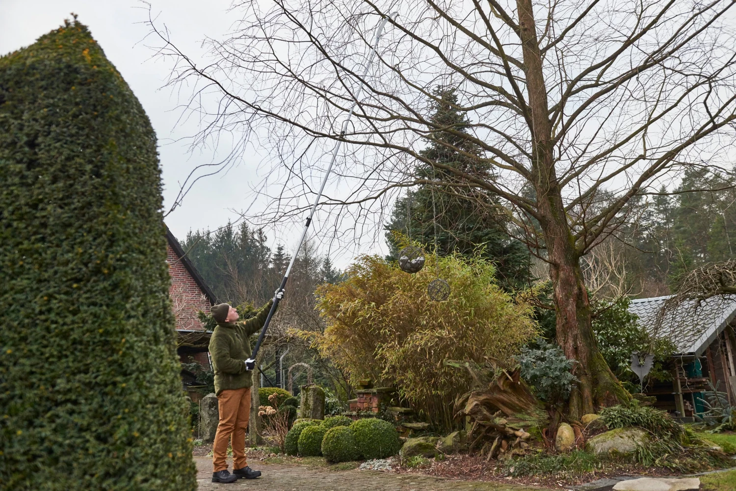 Der Haken verhindert das Herausrutschen aus dem Sägeschnitt. Das Stoßmesser durchtrennt die Rinde unterhalb des Astes und vermeidet Rindenausrisse. Sie benötigen zum Aufsetzen der Säge mit ST-Gewinde (Nr. 70-154) auf Lock25-Gestänge einen Adapter Nr. 70-563.