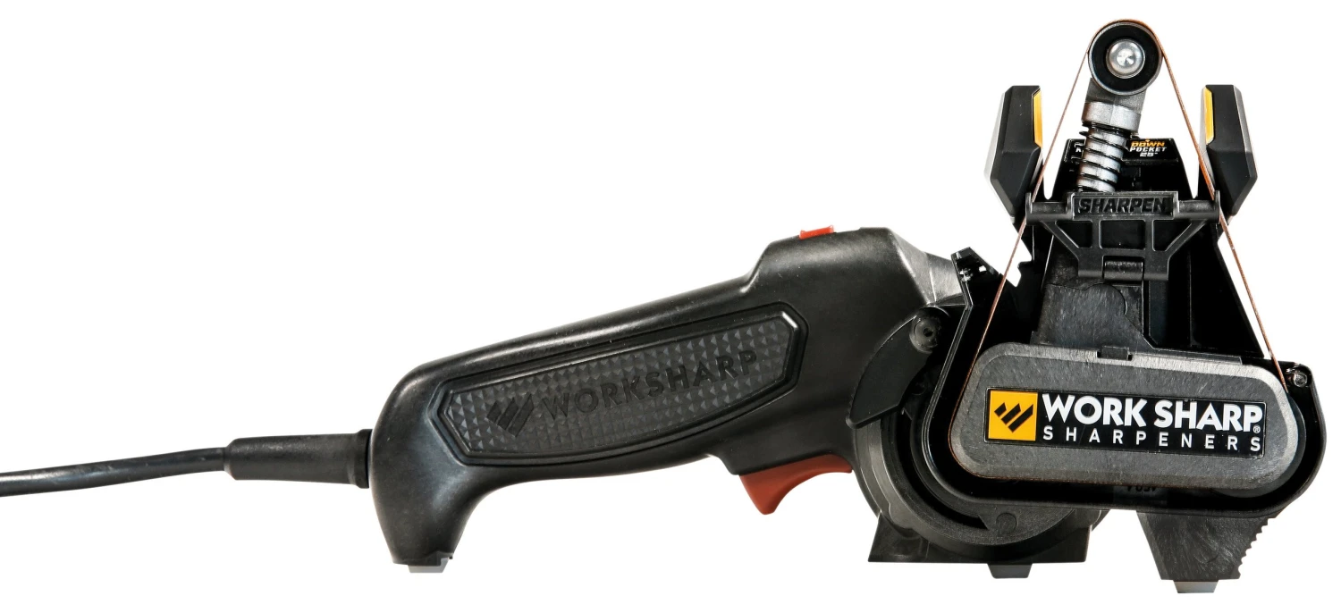 Das Work Sharp Knife and Tool Sharpener MK II ist ein Schärfgerät für höchste Ansprüche. Die Schleifbänder des Gerätes schärfen Koch- und Outdoormesser aller Art, aber auch Äxte, Steicheisen und Gartenscheren. Zwei Schärfwinkel (20 ° und 25°) und zwei Bandgeschwindigkeiten sind möglich. Die intuitive Bedienung erleichtert die Handhabung des Schleifgerätes. Der Work Sharp Knife and Tool Sharpener MK II wird mit einer variablen Klingenführung, je zwei Schleifbändern der Körnungen P 80, P220 und P6000 für Grob-, Mittel und Feinschliff sowie einer ausführlichen Anleitung ausgeliefert.